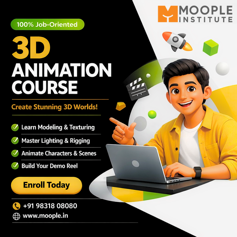 "Take your creativity to the next level with advanced 3D animation training designed for aspiring professionals. Call us - +919831808080"